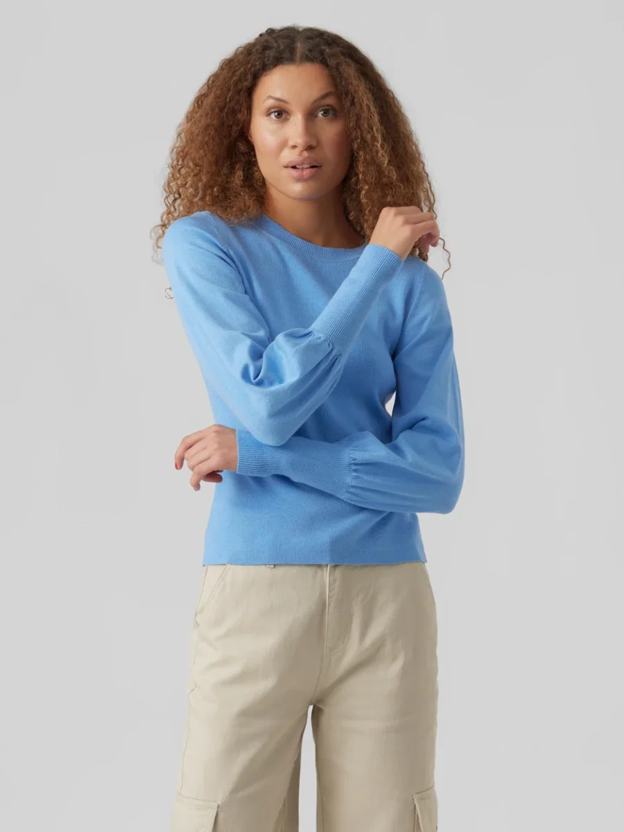 Deze lichtblauwe Vero Moda trui voor dames is een must-have voor elke kledingkast! De pullover is gemaakt van een zachte mix van viscose, polyester en nylon, waardoor hij niet alleen comfortabel zit maar ook nog eens duurzaam is. De ballonmouwen met hoge manchetten geven de trui een trendy en speelse look. De ronde hals zorgt voor een elegante uitstraling. Deze trui is perfect voor zowel casual als meer formele gelegenheden en is gemakkelijk te combineren met verschillende outfits. Kortom, een echte eyecatcher van Vero Moda die niet mag ontbreken in jouw garderobe! Bestel nu deze prachtige lichtblauwe Vero Moda trui bij Nummerzestien en draag hem met trots.