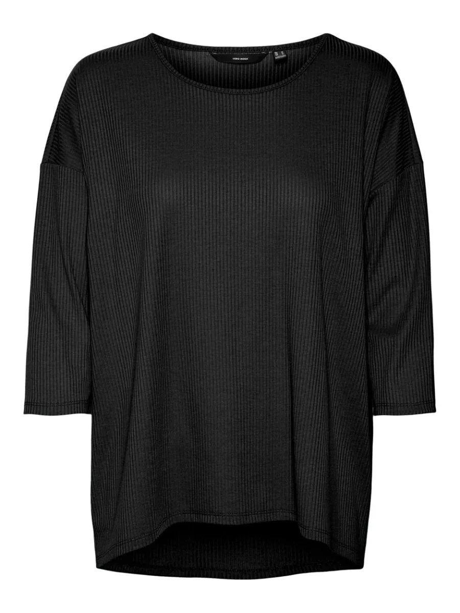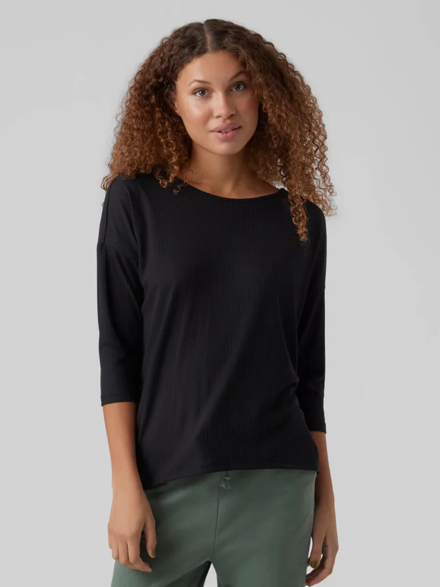Deze zwarte top van Vero Moda is een must-have voor elke moderne vrouw! De top heeft een klassiek 3/4 mouw design en een wijd uitlopende ronde hals, waardoor je er elegant en vrouwelijk uitziet. Het patroon van dunne streepjes geeft de top een speels en tijdloos karakter. Het materiaal van de top bestaat voor 95% uit polyester en 5% uit elastaan, waardoor het een perfecte pasvorm en heerlijk draagcomfort biedt. Deze top is perfect voor elke gelegenheid en kan gemakkelijk gecombineerd worden met andere kledingstukken. Bestel nu en voeg deze chique en trendy top toe aan je garderobe!