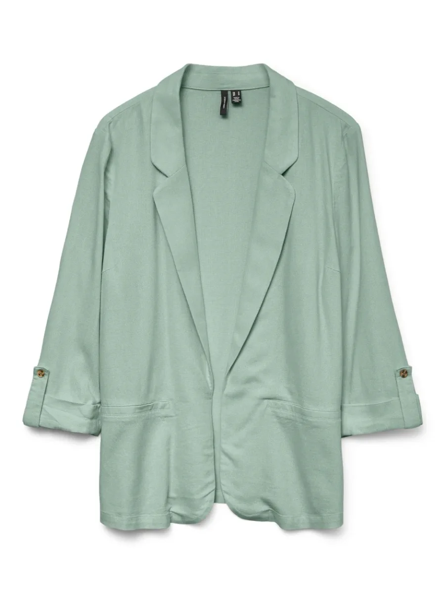Deze prachtige mintkleurige blazer van het populaire merk Vero Moda mag niet ontbreken in jouw kledingcollectie! De blazer is gemaakt van 55% lenzingt ecoverot viscose en 45% linnen, wat zorgt voor een comfortabele en luxe uitstraling. De blazer is perfect te combineren met zowel een zakelijke als casual outfit en is een echte eyecatcher voor elke gelegenheid. Met zijn flatterende pasvorm en tijdloze design is deze blazer een must-have voor elke modebewuste vrouw. Bestel nu deze prachtige blazer en creëer moeiteloos een stijlvolle look!