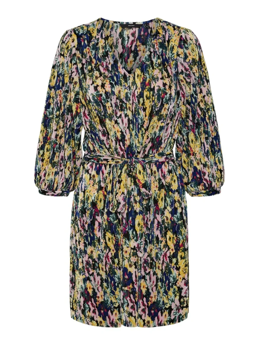 Deze prachtige damesjurk van het merk Vero Moda is een echte eyecatcher in je garderobe. Het zwarte dessin geeft de jurk een chique uitstraling, perfect voor zowel een feestelijke gelegenheid als voor een dagelijkse look. De jurk heeft een elegante V-hals en lange wijde mouwen die zorgen voor een speels en vrouwelijk effect. Het materiaal van 100% polyester zorgt ervoor dat de jurk licht en comfortabel aanvoelt op de huid. Daarnaast is de jurk voorzien van een trendy all-over print met plissé, wat zorgt voor een uniek en stijlvolle uitstraling. Om je figuur te accentueren wordt de jurk geleverd met een bijpassende tailleceintuur. Met deze zwarte dessin jurk van Vero Moda steel je gegarandeerd de show! Bestel hem nu in onze kledingwebshop NummerZestien en ervaar de perfecte combinatie van comfort en stijl.
