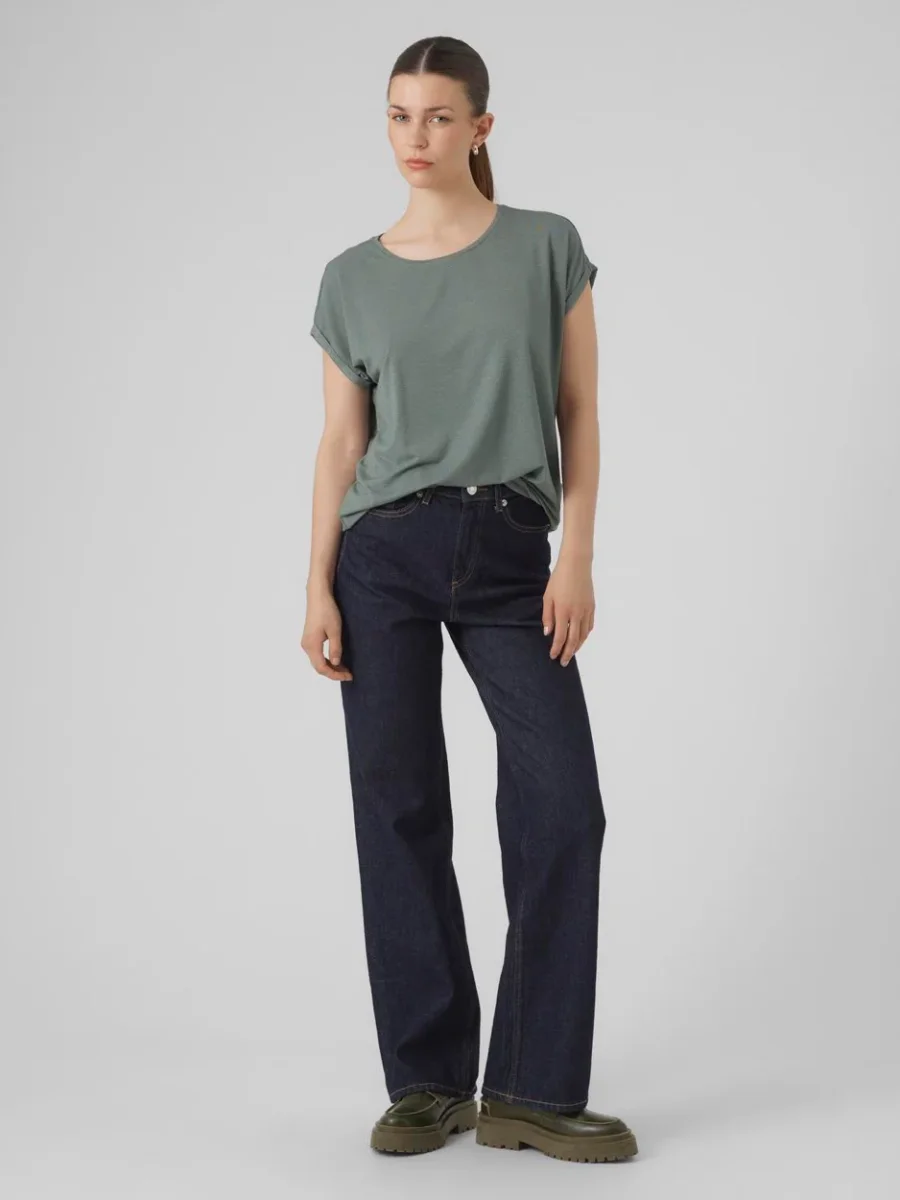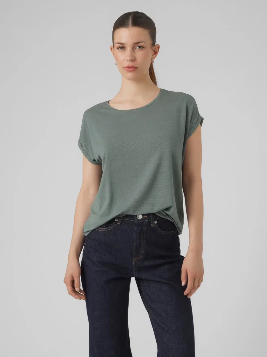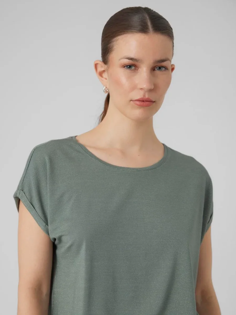 Vmlava Plain Ss Top Lurex Strip Ga – Groen Dessin
