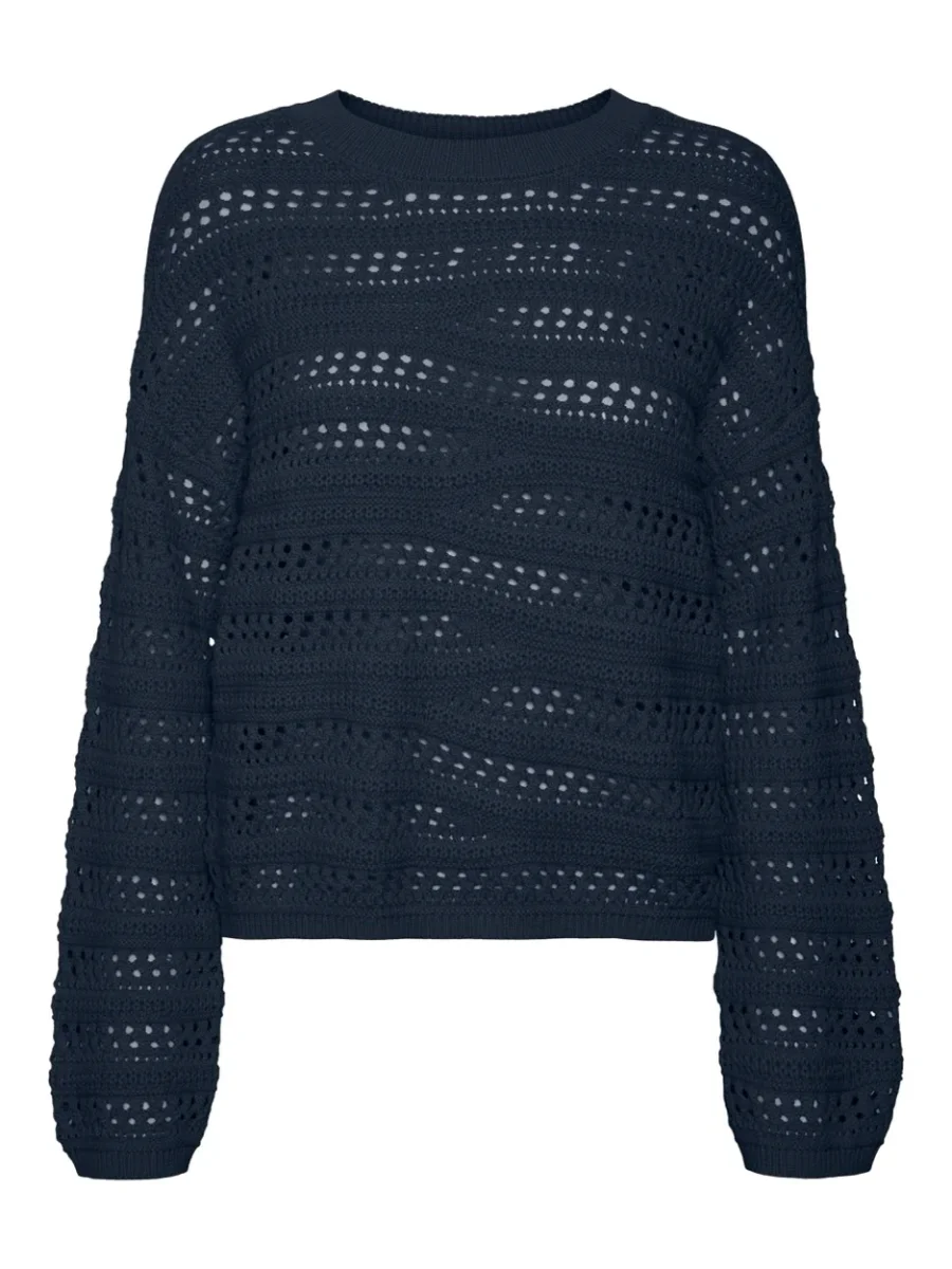 Deze prachtige navy kleurige trui voor dames van het populaire merk Vero Moda is een must-have voor jouw wintergarderobe! De trui is gemaakt van 100% katoen, waardoor hij heerlijk zacht en comfortabel is om te dragen. De eenvoudige maar stijlvolle trui is perfect te combineren met verschillende outfits. De lange mouwen en ronde hals geven de trui een klassieke uitstraling, terwijl de ribgebreide afwerking zorgt voor een trendy touch. Draag de trui met een jeans en sneakers voor een casual look of met een rok en laarzen voor een meer geklede outfit. Deze tijdloze trui is een onmisbaar item in elke kledingkast en zal je warm en modieus houden tijdens de koude winterdagen. Bestel nu deze prachtige Vero Moda trui in navy en verwen jezelf met de ultieme combinatie van comfort en stijl!