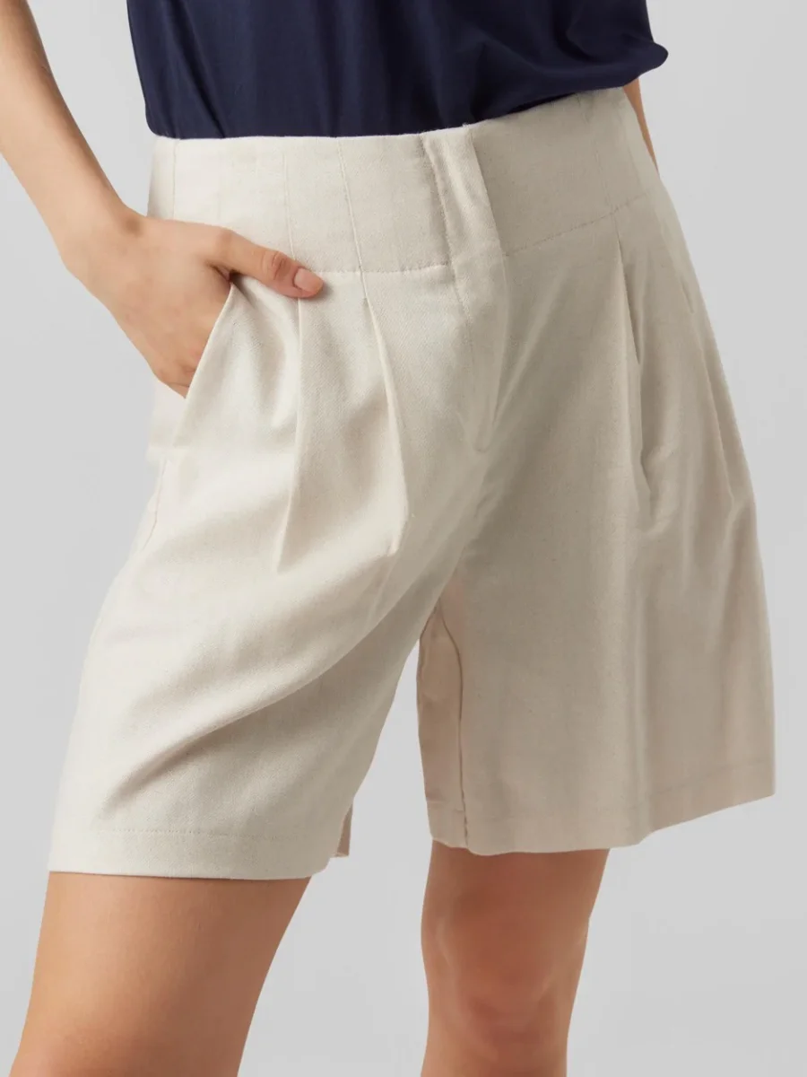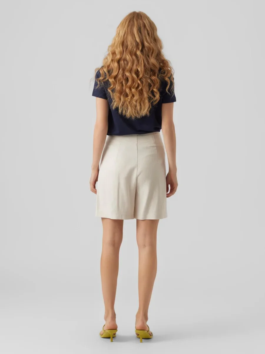 Deze beige short van Vero Moda, genaamd Lillmuno, is een absolute must-have voor elke vrouw. De short valt net boven de knie en heeft een stijlvolle loose fit. Dit zorgt voor een comfortabele pasvorm en een trendy uitstraling. De short is gemaakt van een zachte en luchtige mix van materialen, bestaande uit 55% viscose, 23% linnen, 17% polyester en 5% katoen.