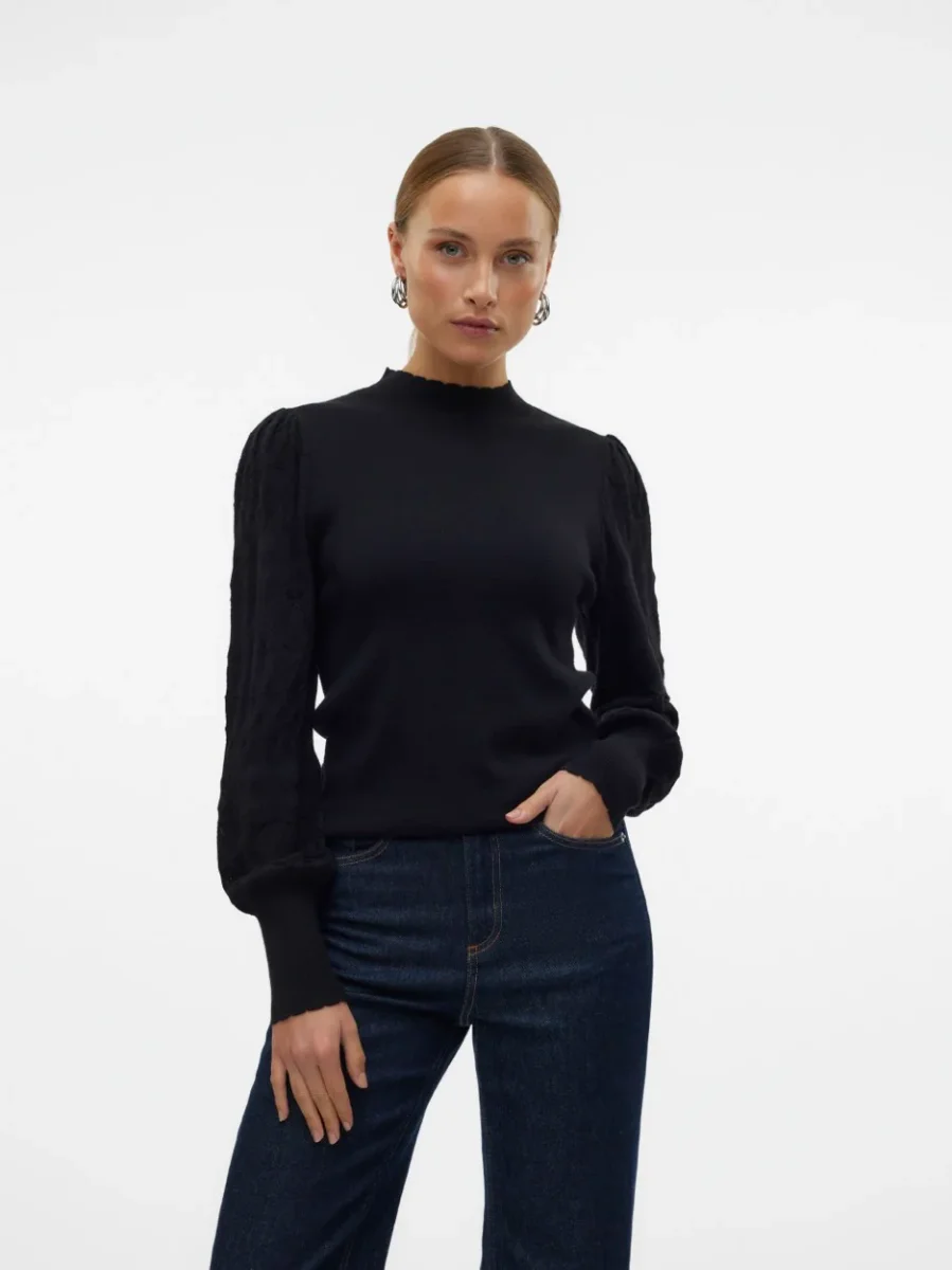 Maar dat is niet alles, deze trui is ook vriendelijk voor het milieu. Gemaakt van milieuvriendelijke materialen, waaronder 52% viscosa van het duurzame Livaeco by Birla Celluloset, kun jij met een gerust hart deze trui aanschaffen. Kortom, deze zwarte trui van Vero Moda is niet alleen stijlvol en comfortabel, maar ook verantwoord en een onmisbaar item in elke kledingkast. Shop nu en upgrade jouw look met deze prachtige trui van Nummerzestien.