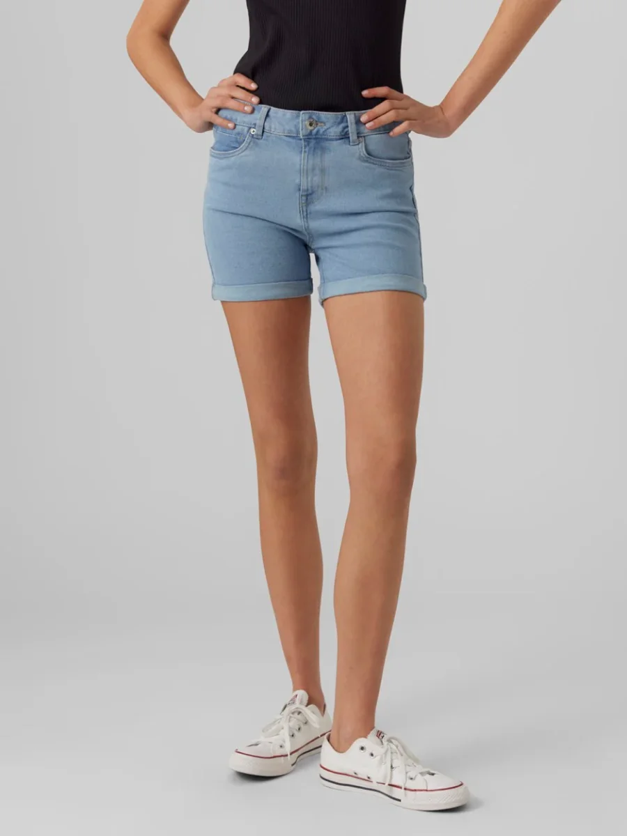 Op zoek naar de perfecte toevoeging aan je zomergarderobe? Deze blauwe denim short van Vero Moda is precies wat je nodig hebt! Gemaakt van een mix van 52% katoen, 26% polyester, 20% gerecycled katoen en 2% elastaan, biedt deze short een perfecte pasvorm en een heerlijk draagcomfort. De klassieke blue denim kleur is gemakkelijk te combineren en ziet er altijd stijlvol uit. De korte lengte en de stoere distressed details geven deze short een trendy uitstraling. Of je nu naar het strand gaat of een dagje de stad in gaat, deze short is altijd een goede keuze. Bestel nu en geniet van ultieme comfort en stijl met deze fantastische Short Denim Dames van Vero Moda!
