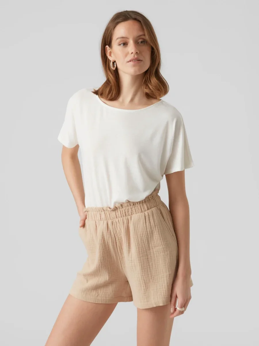 Deze witte top van het merk Vero Moda is een must-have voor elke vrouw. De top is perfect voor zowel casual als formele gelegenheden en is gemakkelijk te combineren met verschillende outfits. De top heeft een klassieke ronde hals en korte mouwen, waardoor het een tijdloos stuk is dat niet mag ontbreken in je garderobe.