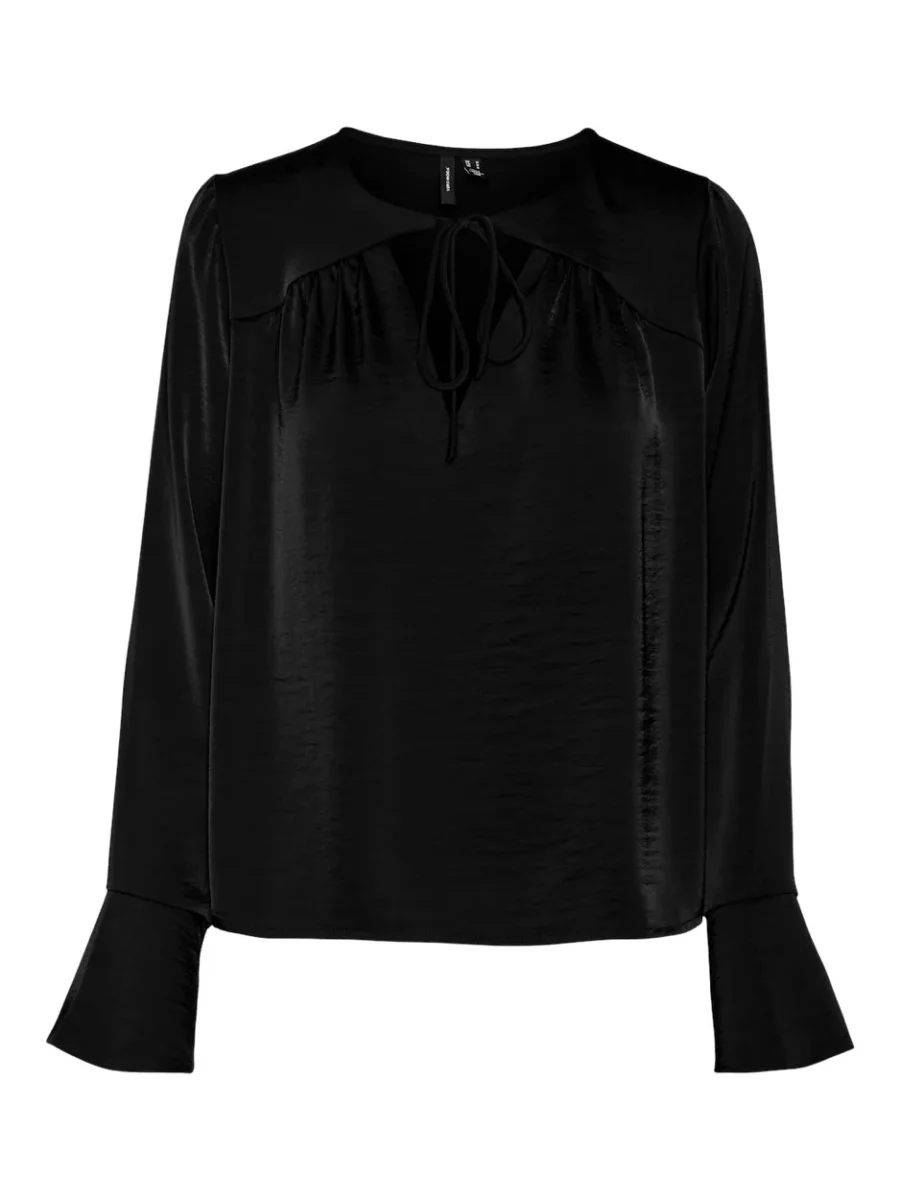 Deze prachtige zwarte top met lange mouwen voor dames is een echte must-have voor elke kledingkast. Het is gemaakt van 50% polyester en 50% gerecycled polyester, wat zorgt voor een duurzaam en milieuvriendelijk product. Deze top is afkomstig van het trendy merk Vero Moda en staat garant voor een stijlvolle look. Het zachte en soepele materiaal zorgt voor een comfortabele pasvorm, terwijl de prachtige zwarte kleur gemakkelijk te combineren is met andere kledingstukken. Of je nu een dagje gaat winkelen of een avondje uit gaat, deze top is de perfecte keuze. Bestel nu en voeg deze mooie top toe aan je garderobe!