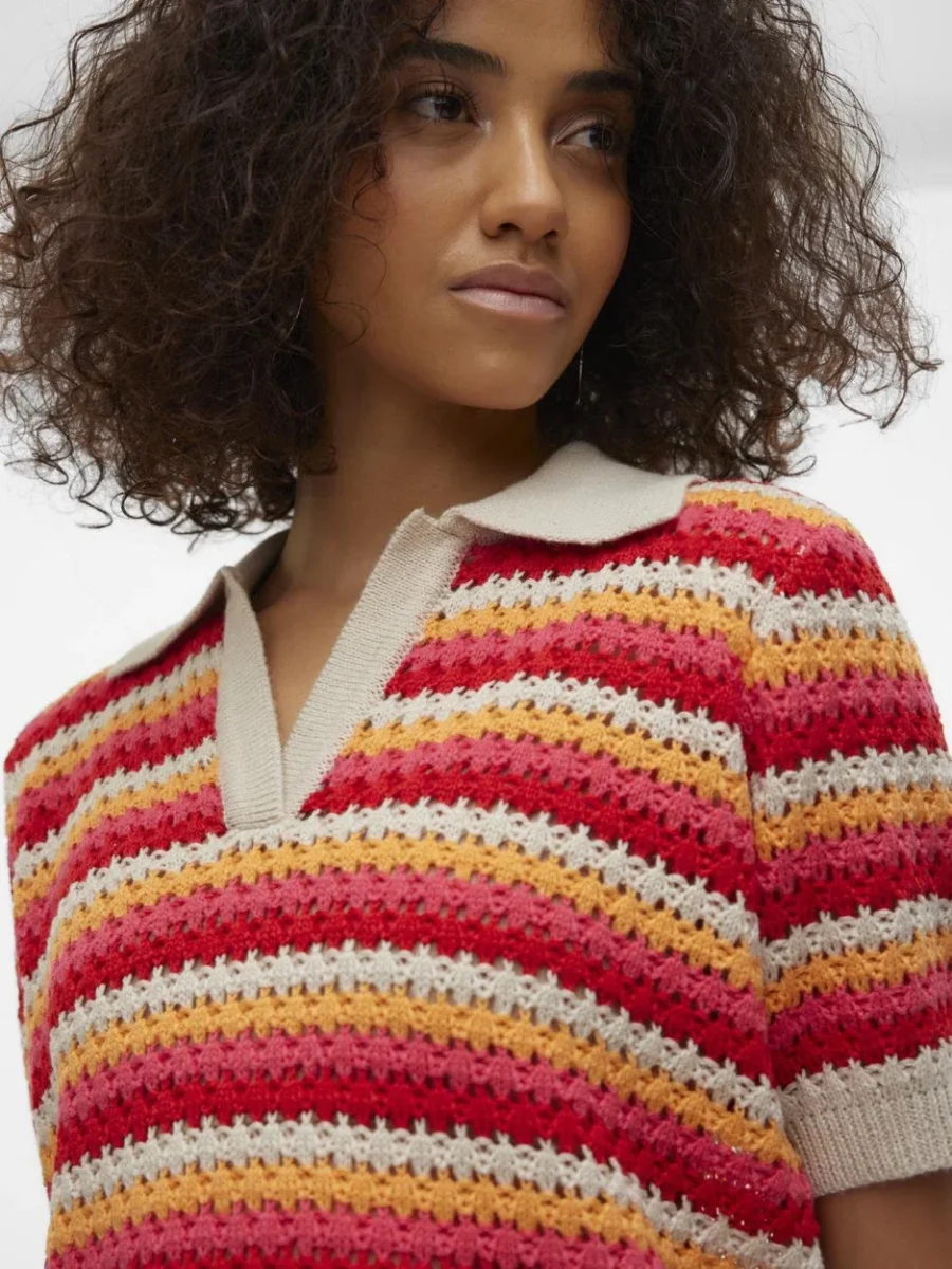 Deze prachtige multicolor trui van Vero Moda is een must-have voor elke vrouw die van kleur houdt. Gemaakt van hoogwaardige materialen, waaronder 50% gerecycled polyester en 50% acryl, is deze trui niet alleen stijlvol maar ook duurzaam. De verschillende kleuren zorgen voor een speelse en trendy look, perfect voor elk seizoen. Deze trui is perfect te combineren met een jeans voor een casual outfit of met een rok voor een meer geklede look. Met deze trui ben je gegarandeerd van een comfortabele en fashionable look. Shop deze must-have nu bij NummerZestien!