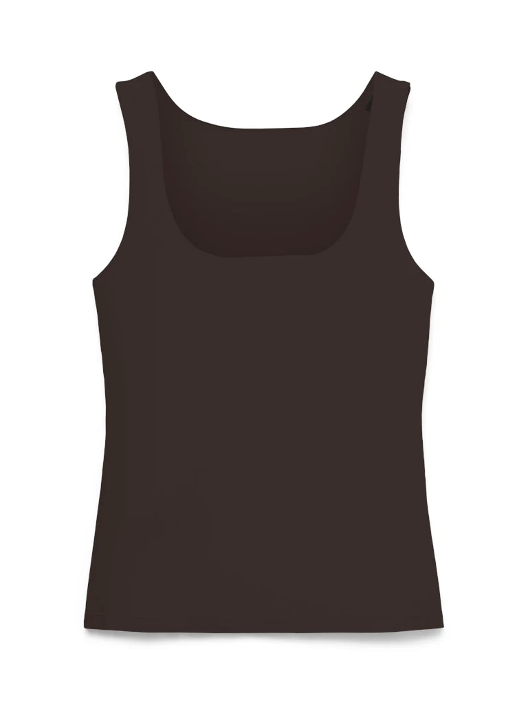 De subtiele bruine kleur geeft deze singlet een tijdloze uitstraling en maakt het gemakkelijk te combineren met andere kleuren en prints. De V-hals voegt een vleugje vrouwelijkheid toe, terwijl de mouwloze stijl perfect is voor de warmere dagen.