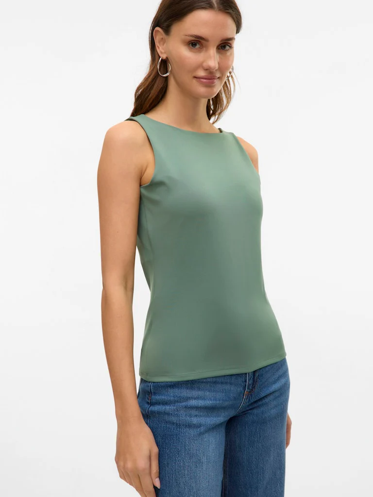 Deze stijlvolle oud groen kleurige singlet van Vero Moda is een must-have voor jouw zomergarderobe! Het is gemaakt van 86% polyester en 14% elastaan, waardoor het zacht en comfortabel aanvoelt op de huid. De singlet heeft een flatterende pasvorm en is perfect te combineren met een mooie jeans of een rok. Of je nu een dagje gaat shoppen of een avondje uit, deze singlet is geschikt voor elke gelegenheid. Bestel nu jouw singlet dames bij Nummerzestien en ervaar zelf het comfort en de stijl van Vero Moda!