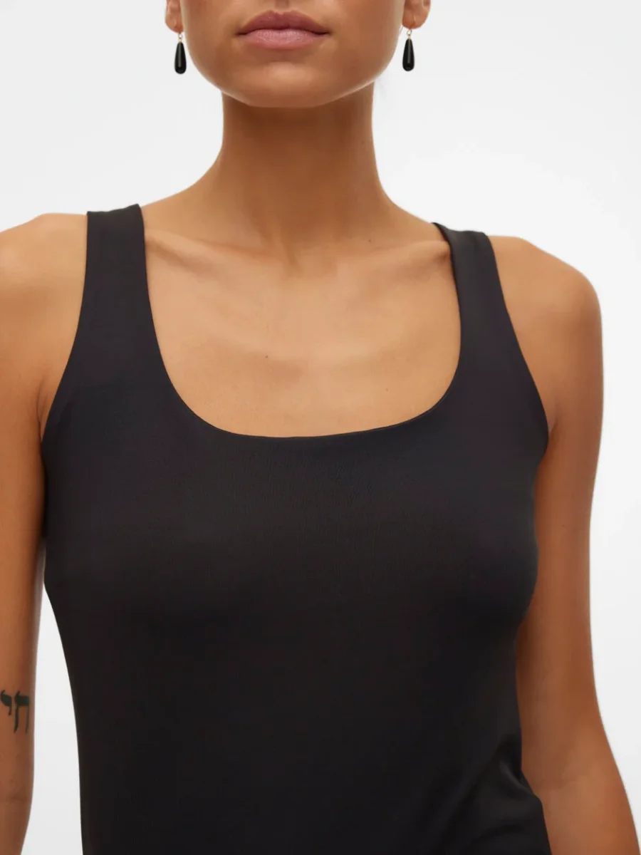 Deze zwarte singlet van het populaire merk Vero Moda is een must-have voor elke vrouwelijke kledingkast. Gemaakt van hoogwaardig materiaal, bestaande uit 86% polyester en 14% elastaan, biedt deze singlet niet alleen een perfecte pasvorm, maar ook een luxueuze uitstraling. De nauwsluitende pasvorm zorgt ervoor dat de singlet mooi op het lichaam aansluit en de vrouwelijke vormen accentueert. De diepe zwarte kleur is tijdloos en eenvoudig te combineren met elke outfit. Of je nu kiest voor een casual look met een jeans of juist voor een chique uitstraling met een rok, deze singlet zorgt altijd voor een stijlvolle touch. Laat je verrassen door de veelzijdigheid van deze singlet en voeg hem nu toe aan je collectie!