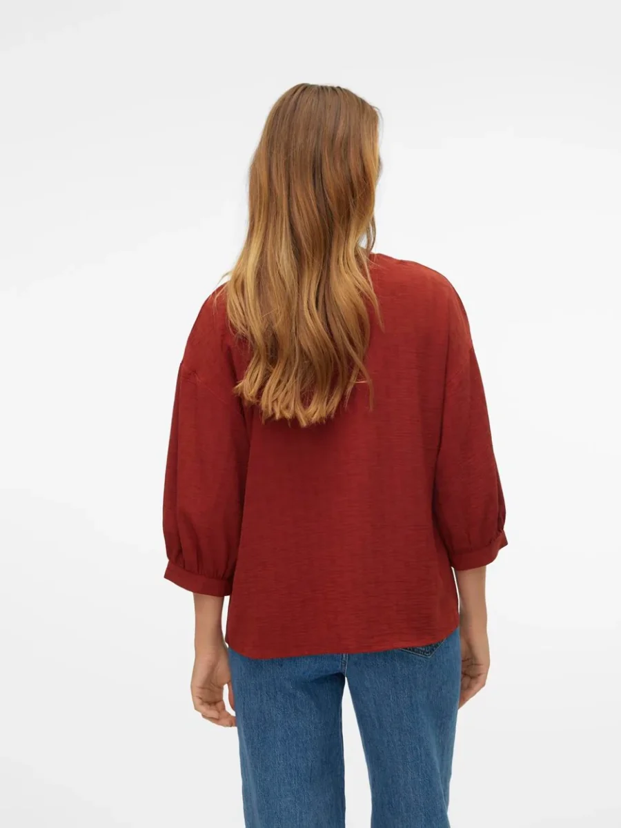 Dit brique kleurige t-shirt van het merk Vero Moda is een must-have item voor elke dame die op zoek is naar een stijlvolle en comfortabele outfit. De lange mouwen geven het shirt een klassieke uitstraling, terwijl de opvallende kleur zorgt voor een trendy touch.
