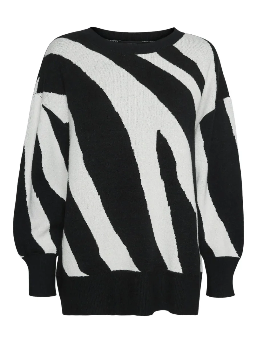 Dus ben jij op zoek naar een tijdloze en trendy trui die zowel comfortabel als stijlvol is? Dan is deze zwarte dessin trui van Vero Moda zeker een aanwinst voor jouw kledingcollectie. Bestel hem nu in onze webshop en geniet van de perfecte combinatie van mode en comfort!
