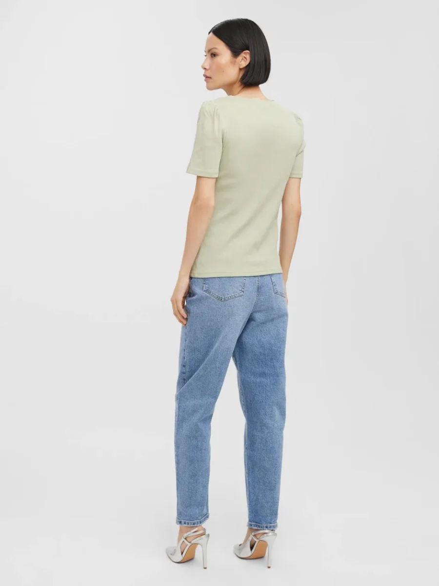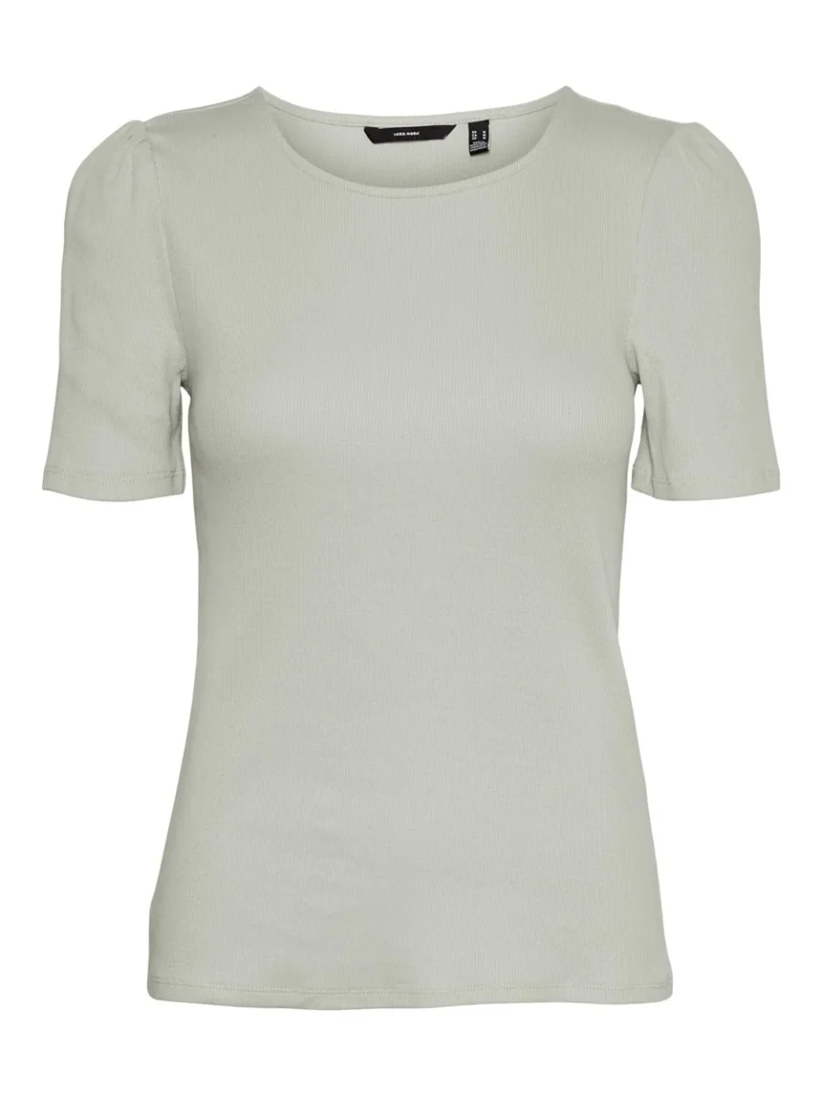 Op zoek naar een trendy top voor deze zomer? Dan is deze mint kleurige top van Vero Moda absoluut een must-have voor jouw kledingkast! De top heeft korte lichte pofmouwen en een comfortabele ronde hals. Het shirt is gemaakt van hoogwaardig materiaal, namelijk 95% katoen en 5% elastaan. Door de fijne rib structuur voelt de top heerlijk zacht aan op de huid en valt deze soepel om het lichaam. Perfect voor een zomerse dag of een avondje uit! Combineer de top bijvoorbeeld met een korte broek en sneakers voor een casual look, of draag het met een stijlvolle rok en sandalen voor een chique uitstraling. Bestel deze top nu bij NummerZestien en geniet van een trendy en comfortabele outfit!