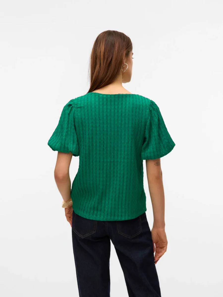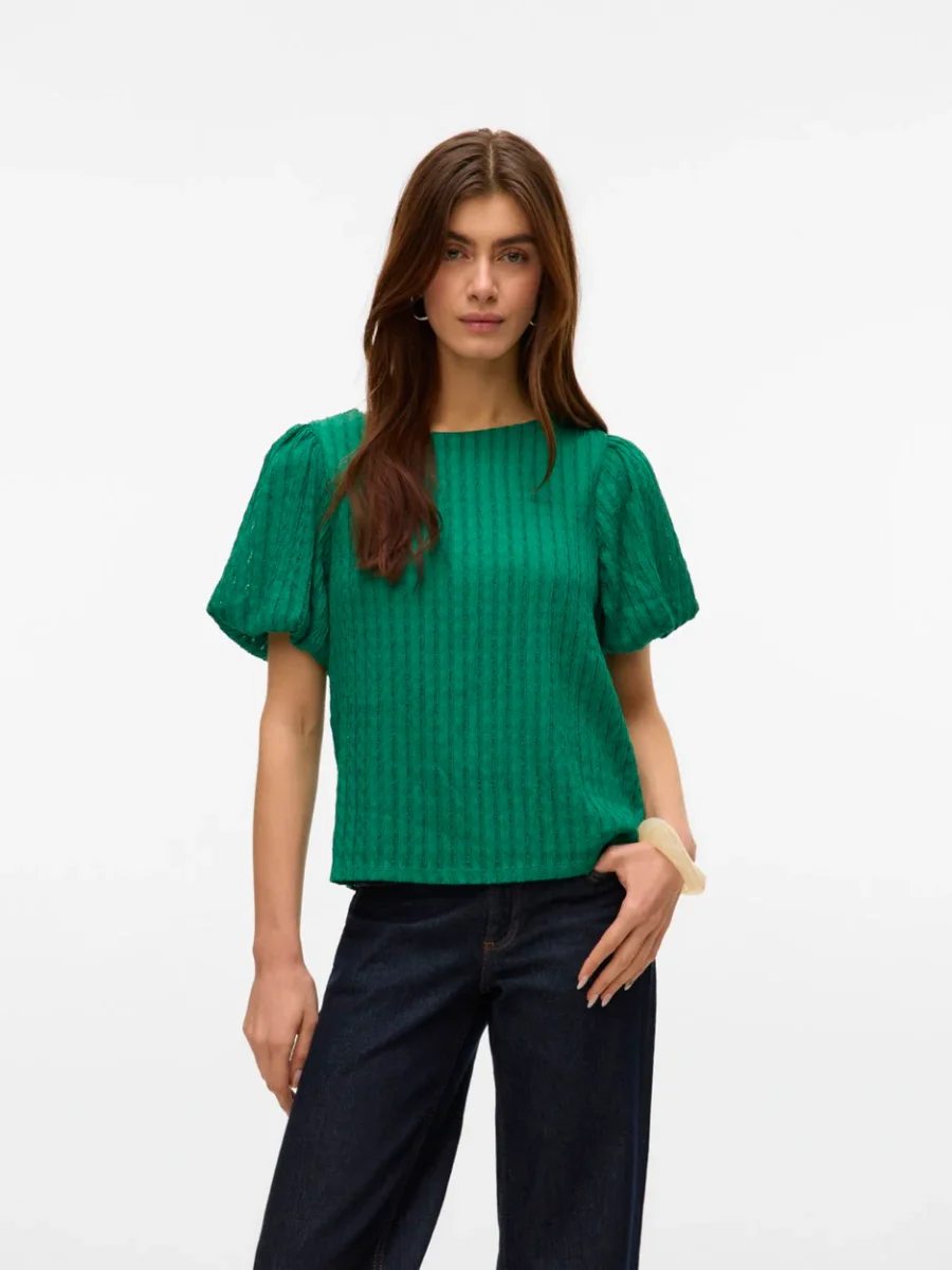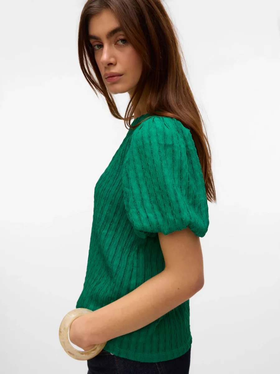 Deze elegante en trendy groene top van het merk Vero Moda is een echte must-have voor elke modebewuste vrouw! Gemaakt van 98% gerecycled polyester en 2% elastaan, draag je niet alleen een stijlvolle top, maar draag je ook bij aan een duurzame en milieuvriendelijke mode-industrie. De top heeft een comfortabele pasvorm met korte mouwen en is geschikt voor elke gelegenheid. Of je nu gaat voor een casual look of een chique outfit, deze top is de perfecte aanvulling op jouw garderobe. Bestel nu en straal in deze prachtige groene top van NummerZestien!
