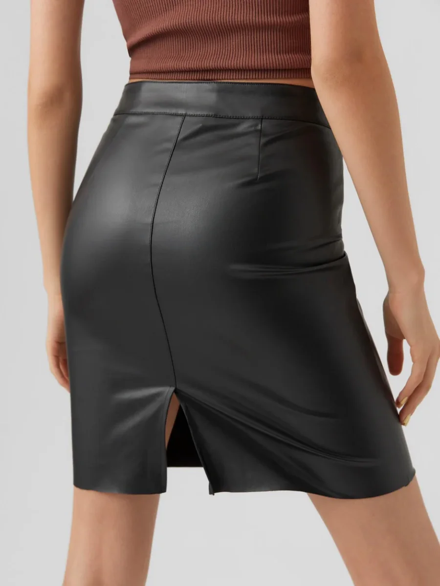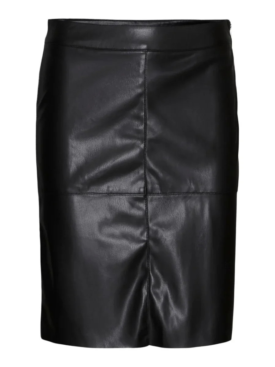 Deze trendy en stijlvolle zwarte imitatieleren rok van Vero Moda is een must-have item voor elke vrouw! De rok heeft een korte lengte, waardoor jouw benen mooi uitkomen en is gemaakt van hoogwaardig imitatieleer. Dit geeft de rok niet alleen een stoere uitstraling, maar ook een luxe en duurzame touch.