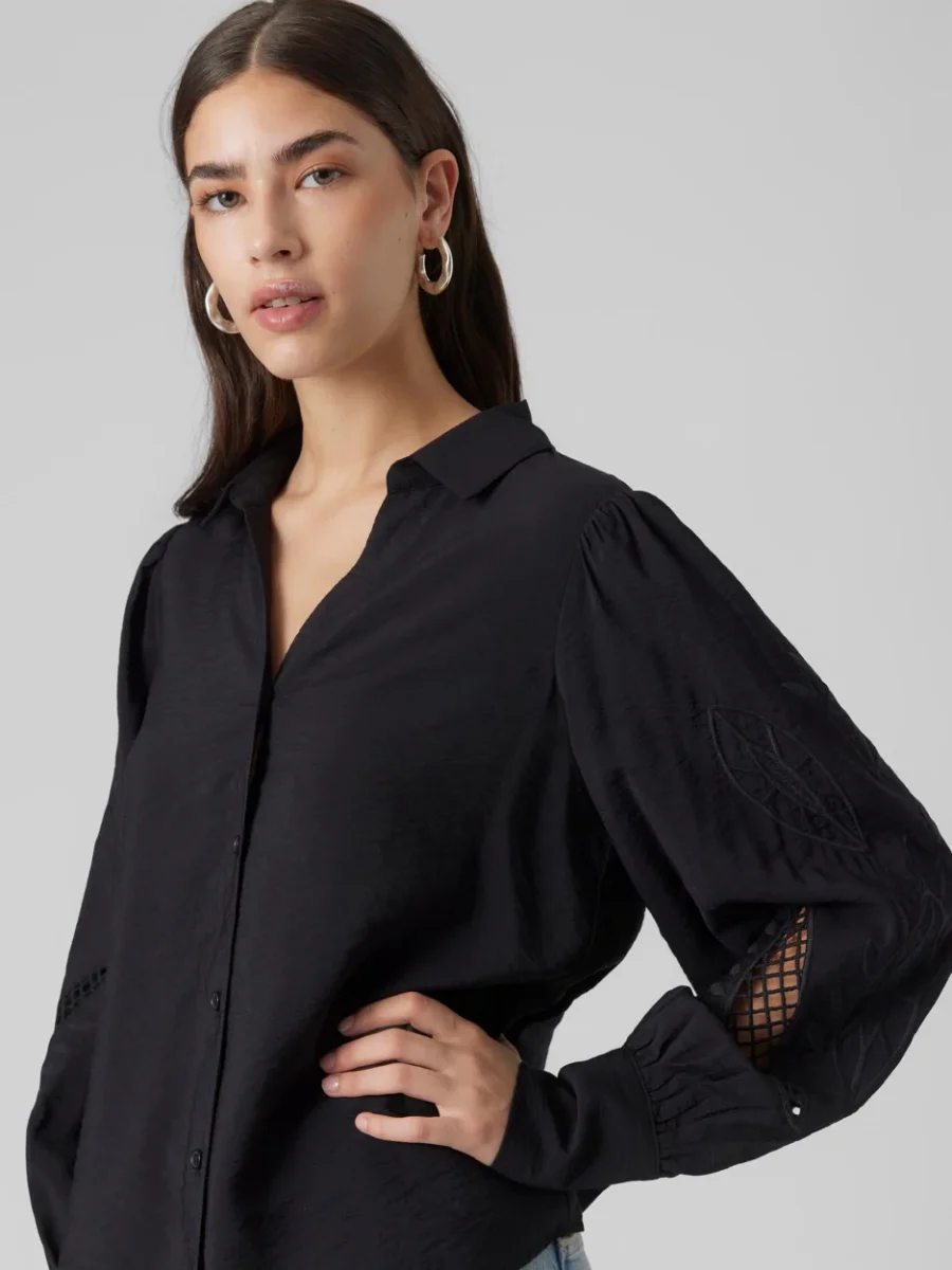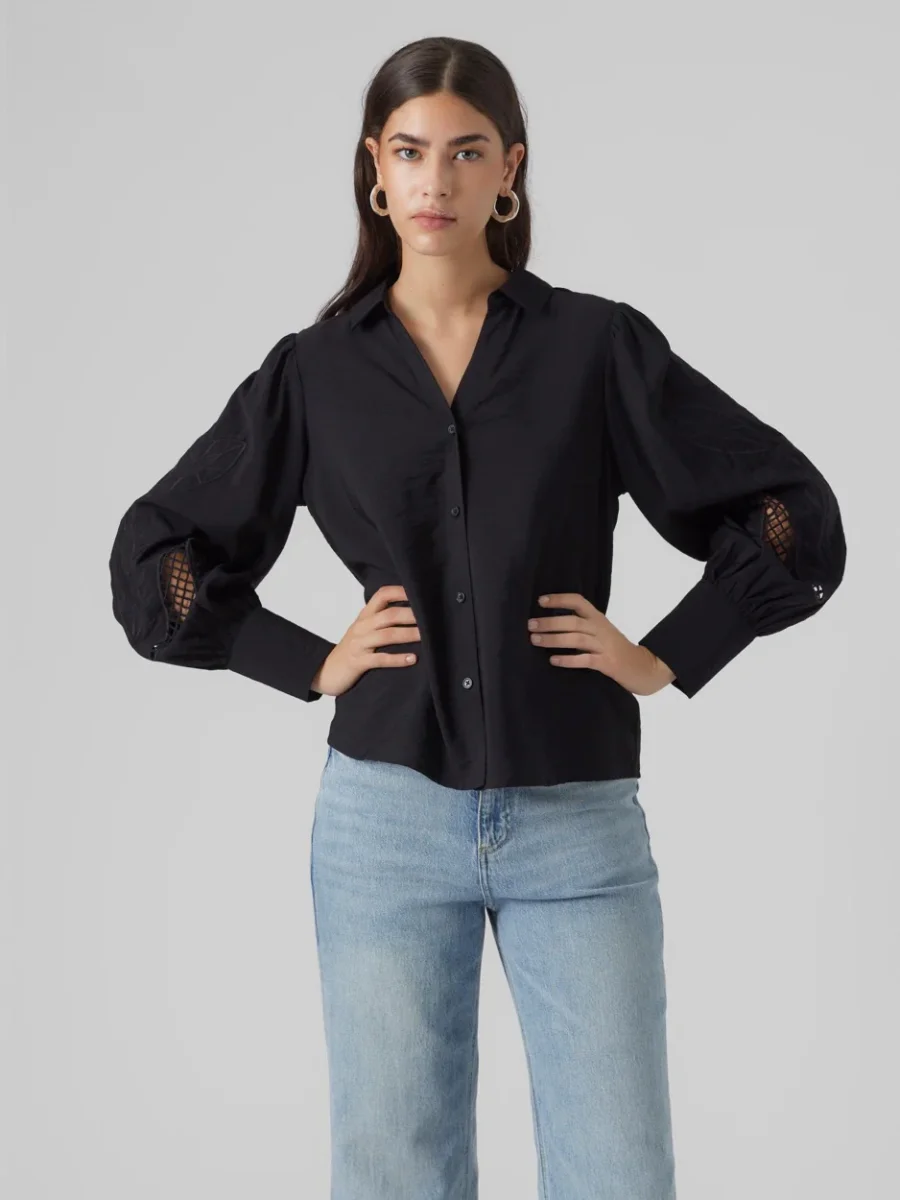 Bestel deze prachtige zwarte blouse nu bij NummerZestien en voeg een echte must-have toe aan je garderobe. Met deze blouse van Vero Moda ben je verzekerd van een unieke en trendy look. Aarzel niet langer en bestel nu!