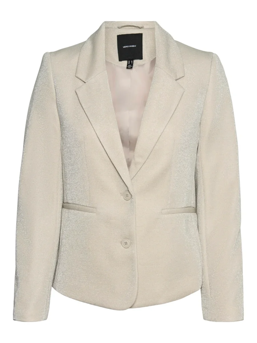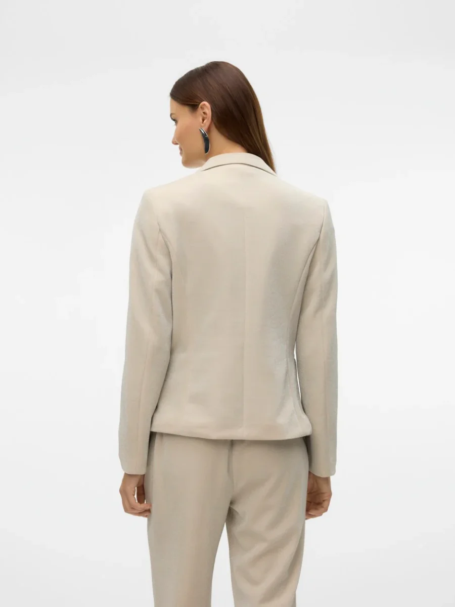 Deze fashionable beige blazer van Vero Moda is een echte must-have voor jouw kledingkast. Gemaakt van duurzame materialen, namelijk 76% gerecycled polyester, 20% viscose en 4% elastaan, is deze blazer niet alleen stijlvol maar ook verantwoord. Door de toevoeging van viscose voelt de blazer zijdezacht aan en is het aangenaam om te dragen. De elastaan zorgt voor een comfortabele stretch en geeft de blazer een perfecte pasvorm. Door de neutrale beige kleur is deze blazer gemakkelijk te combineren en geschikt voor elke gelegenheid. Draag hem naar je werk met een blouse en pantalon of maak je casual outfit af met een t-shirt en jeans. Bestel nu deze blazer bij nummerzestien en maak je kledingcollectie compleet!