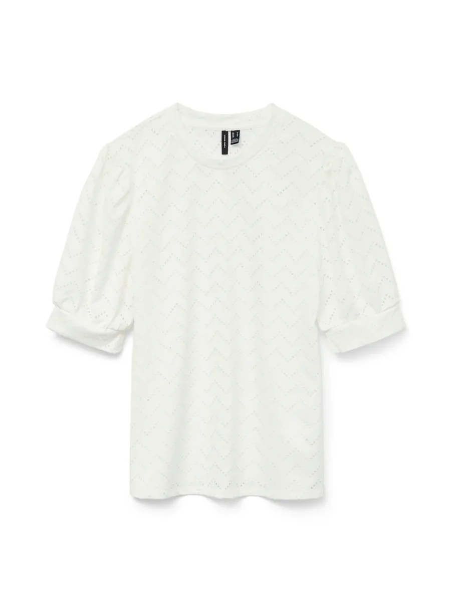 De wit kleurige top van het merk Vero Moda is een must-have voor elke vrouwelijke kledingkast. Gemaakt van 95% gerecycled polyester en 5% elastaan, is deze top niet alleen stijlvol, maar ook milieuvriendelijk. Het materiaal biedt een comfortabele pasvorm die perfect aansluit op je lichaam. De top heeft korte mouwen en een ronde halslijn, waardoor het geschikt is om te dragen tijdens zowel casual als formele gelegenheden. De witte kleur geeft een frisse en zomerse uitstraling aan je outfit. Combineer het met een jeans voor een casual look of met een rok voor een meer formele outfit. Met deze top van Vero Moda ben je altijd verzekerd van een moderne en duurzame stijl. Bestel nu en voeg deze must-have top toe aan je garderobe!