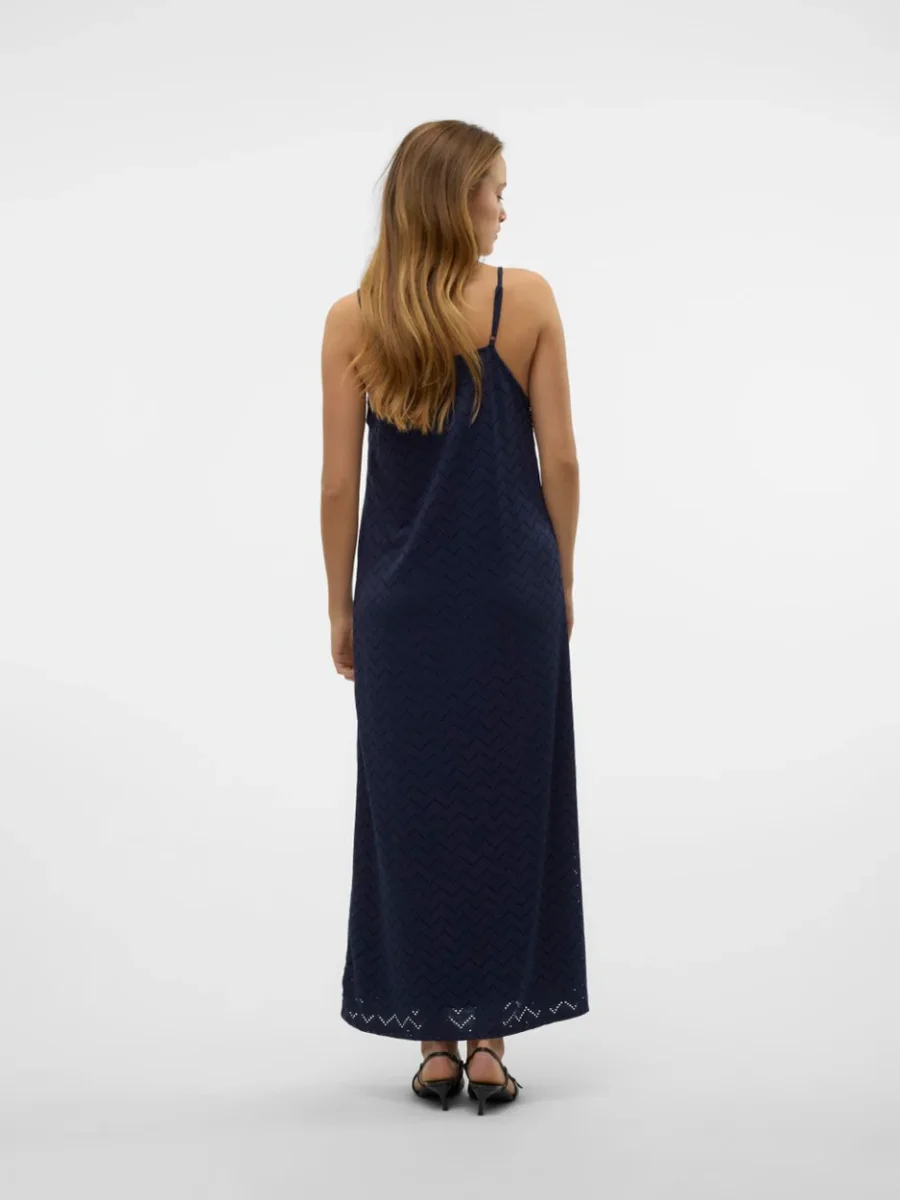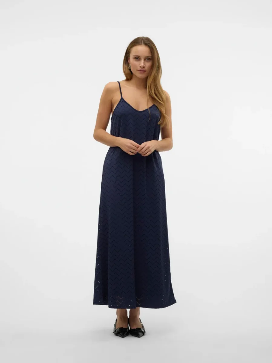 Deze prachtige maxi jurk dames in de kleur navy van Vero Moda is de perfecte toevoeging aan jouw zomergarderobe. Gemaakt van 95% gerecycled polyester en 5% elastaan, is deze jurk niet alleen stijlvol maar ook duurzaam. Het soepele materiaal valt elegant om het lichaam en zorgt voor een comfortabele pasvorm. Of je nu naar een strandfeest gaat of een dagje uit in de stad, met deze jurk steel jij gegarandeerd de show. Combineer het met een paar sandalen en een leuke tas voor een complete outfit. Bestel nu en geniet van een duurzame en modieuze look met deze navy maxi jurk van Vero Moda.