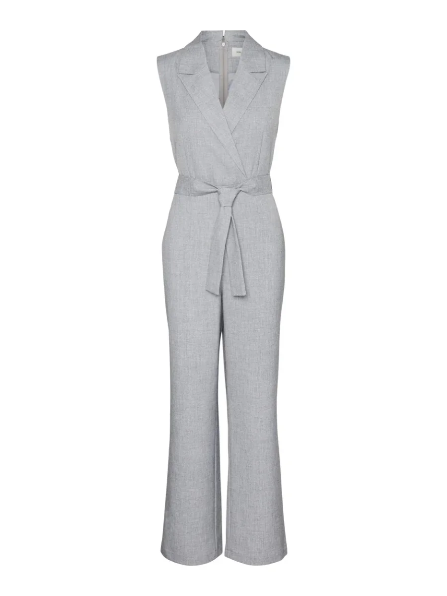 De grijze Vero Moda Yolanda jumpsuit is een must-have item voor elke modebewuste vrouw. Met zijn lange, wijde pijpen en mouwloze design is deze jumpsuit perfect voor elk seizoen. De jumpsuit heeft een valse overslag met kraag en een stijlvolle ritssluiting aan de achterkant. Daarnaast heeft de jumpsuit riemlussen en wordt geleverd met een stoffen ceintuur, waardoor je het kunt tailleren naar jouw wensen.
