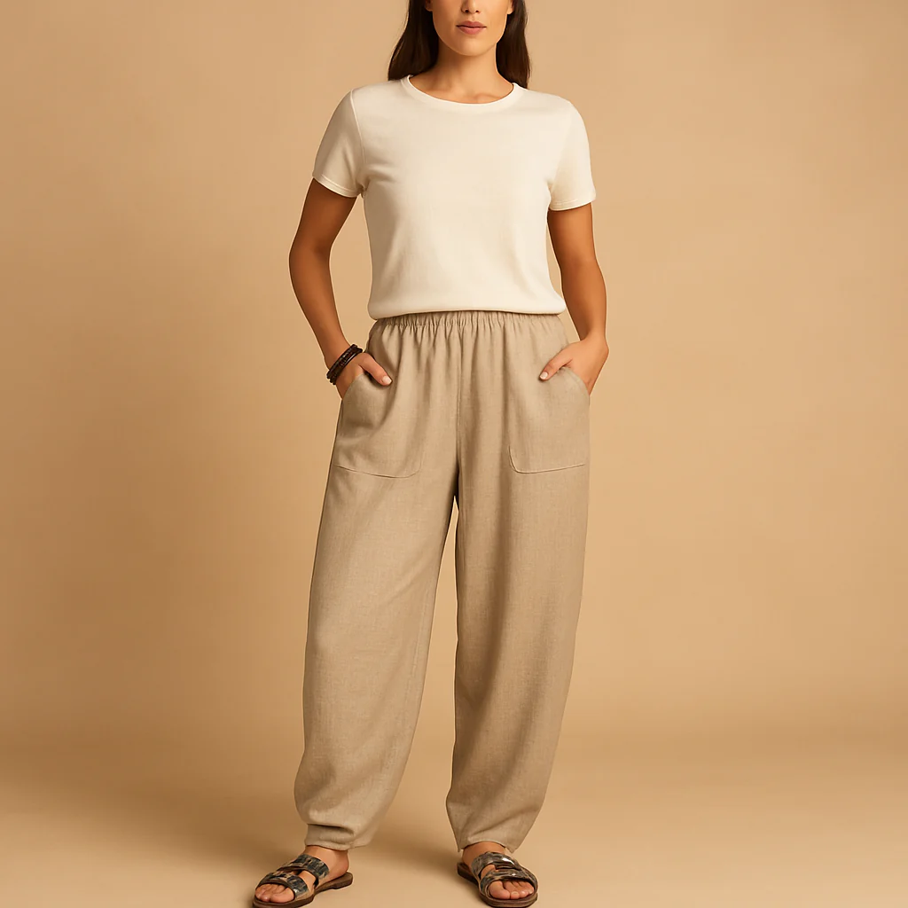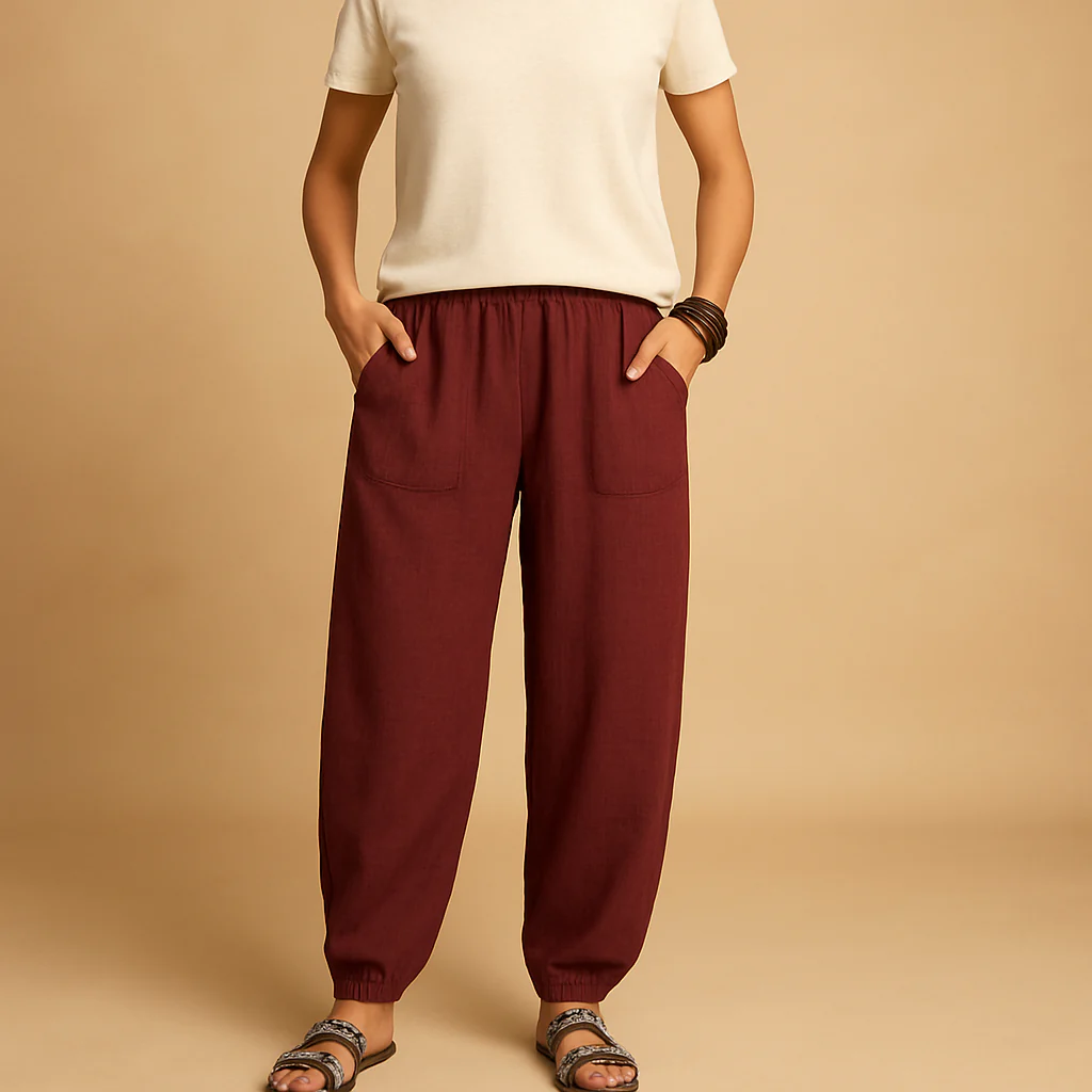 Voel je vrij en stijlvol met Femke, een luchtige zomerbroek voor dames met hoge taille en een casual boho look. De losvallende pasvorm zorgt voor maximaal comfort op warme dagen, terwijl de functionele zakken het gebruiksgemak verhogen. Dankzij het lichte ontwerp en de natuurlijke flair is deze broek perfect voor een ontspannen dag op het strand of een zomerse stadswandeling. Combineer Femke moeiteloos met een top of blouse voor een nonchalante maar elegante uitstraling.